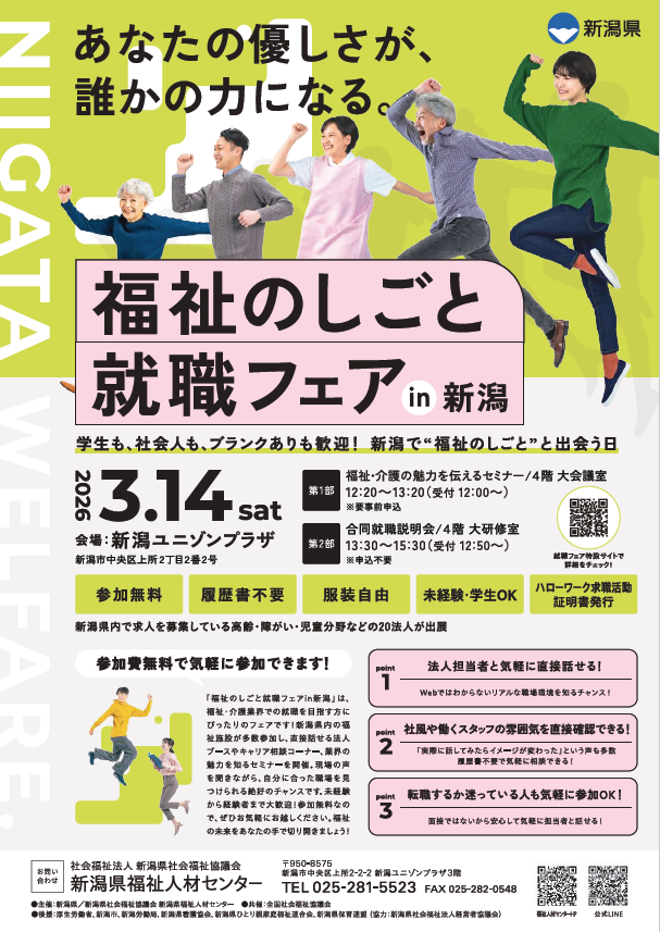 3/14(土)開催!「福祉のしごと就職フェア in 新潟」に出展します!