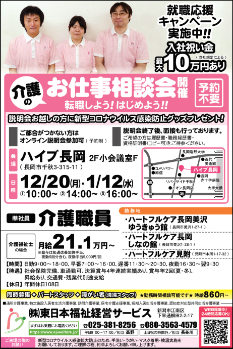 ※12月12日に、新潟日報社の週刊求人情報折込「日報わーくる」にも掲載させていただきました。