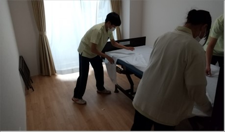 研修では、社会人の心構えから、ビジネスマナー、緊急時の対応、介護技術、介護に関わる事柄等々を学びました。
