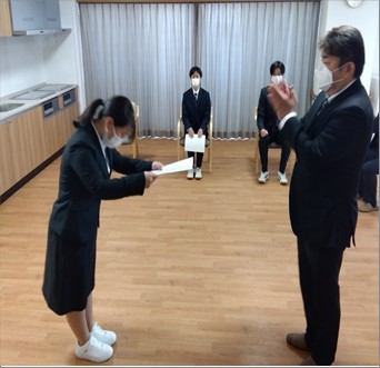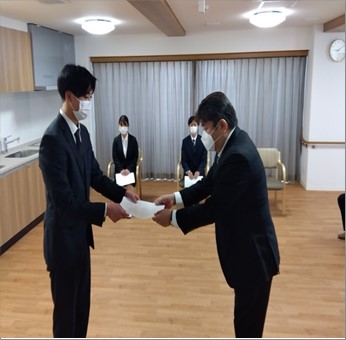 新卒社員4名は、これからも社会人として、介護職員として、たくさんの事を学び、一生懸命に取り組んでいくと思います。